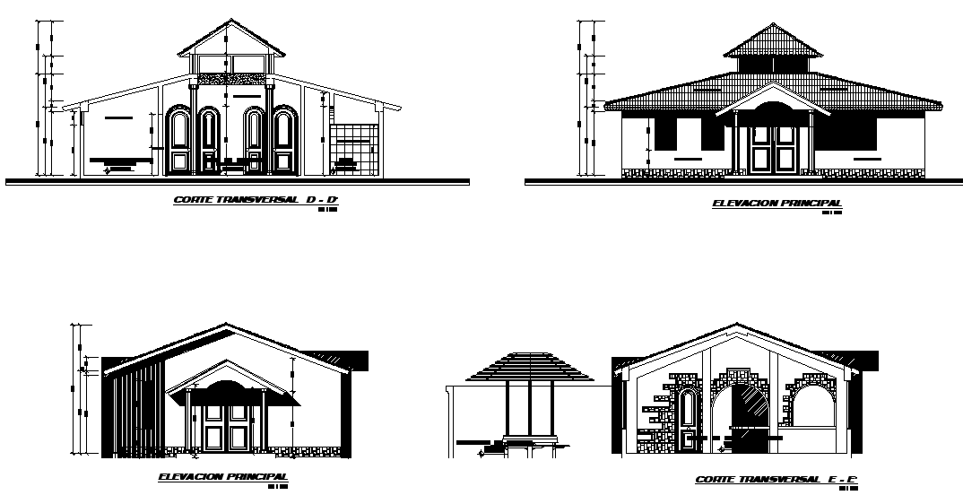 Section and elevation of 11x14m office cum small auditorium plan is given in this Autocad drawing model. Download now.