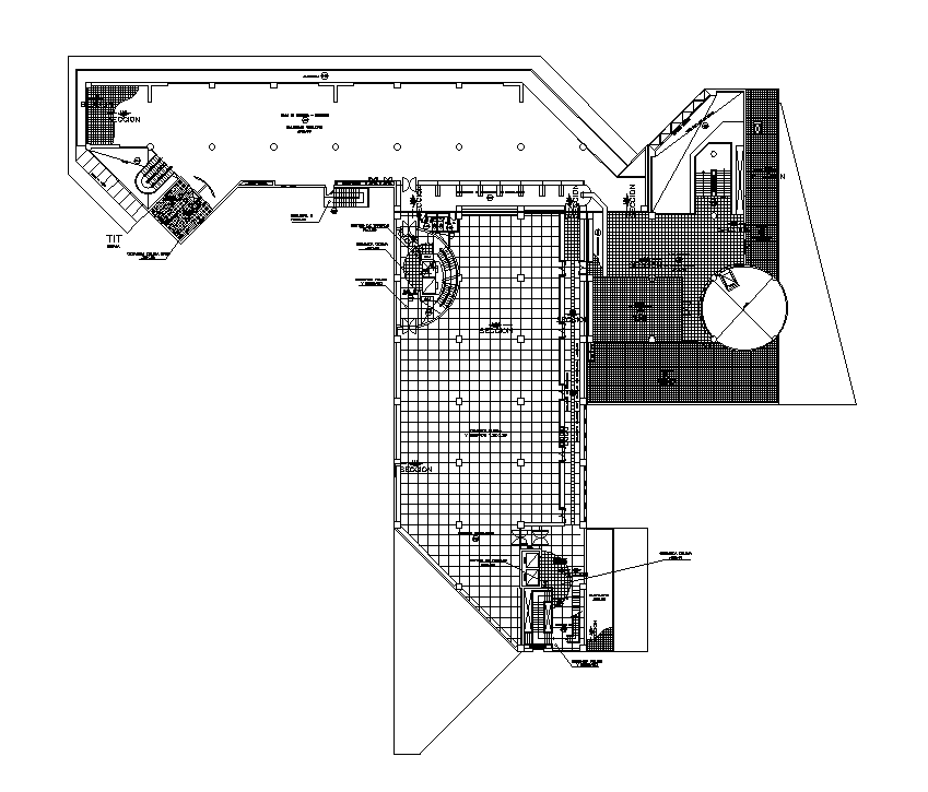 Top section view of matrimonial hall plan is given in this Autocad drawing model.