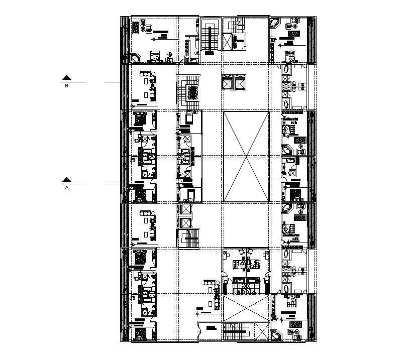 Third floor plan of matrimonial hall plan is given in this Autocad drawing model. Download now.