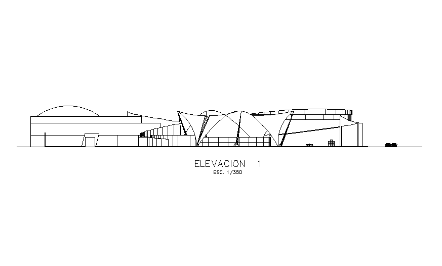 Front side elevation of commercial shopping plan is given in this Autocad drawing file. Download now.