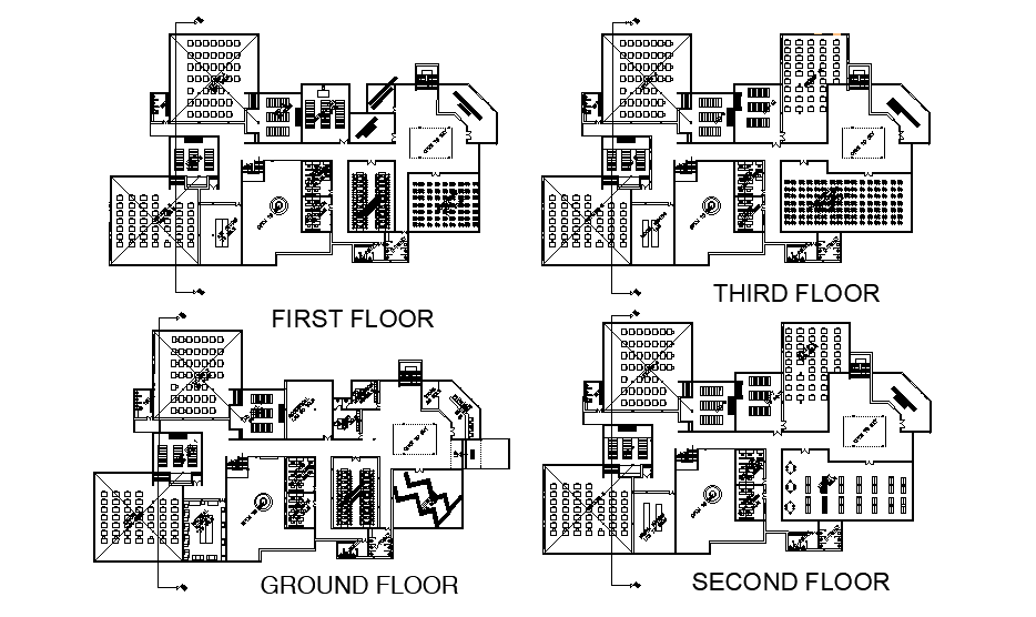 College plan class room details are given in this Autocad drawing file. In this first, second, third and fourth floor plans are given. Each floor details are given in this drawing model. For more details download the Autocad drawing file. Thank you for downloading the AutoCAD drawing file and other CAD program files from our website.