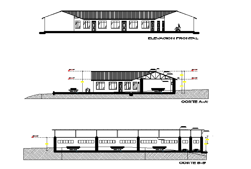Access this AutoCAD DWG file featuring the front section view of a single-story college administrative office building. The layout includes various functional areas such as the academic department, professor cabins, workrooms, director's room, secretary's room, dean's room, small meeting hall, records room, and other essential spaces. The design emphasizes efficient space utilization and accessibility, catering to the needs of academic and administrative staff. Ideal for architects, planners, and educational institutions, this drawing serves as a comprehensive guide for developing or renovating college administrative facilities.