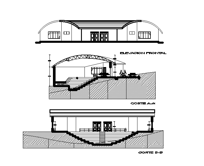 Front section view of college administrative office plan is given in this Autocad drawing file.  Download the 2D Autocad file.