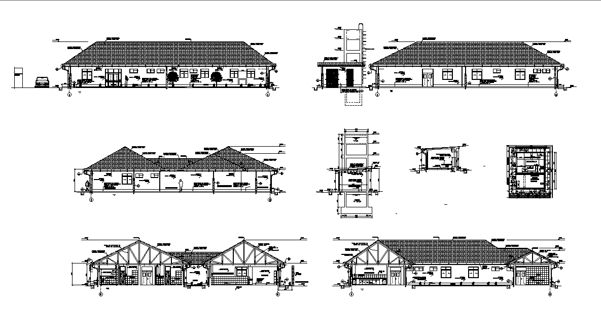 The general hospital building section drawing and elevation design that shows truss span roof red color wavy the otoacoustic sheet polished cement counter board with waterproofing and satin acrylic latex paint h.30 m. and roof rainwater drainage line detail dwg file. Thank you for downloading the Autocad file and other CAD program files from our website.