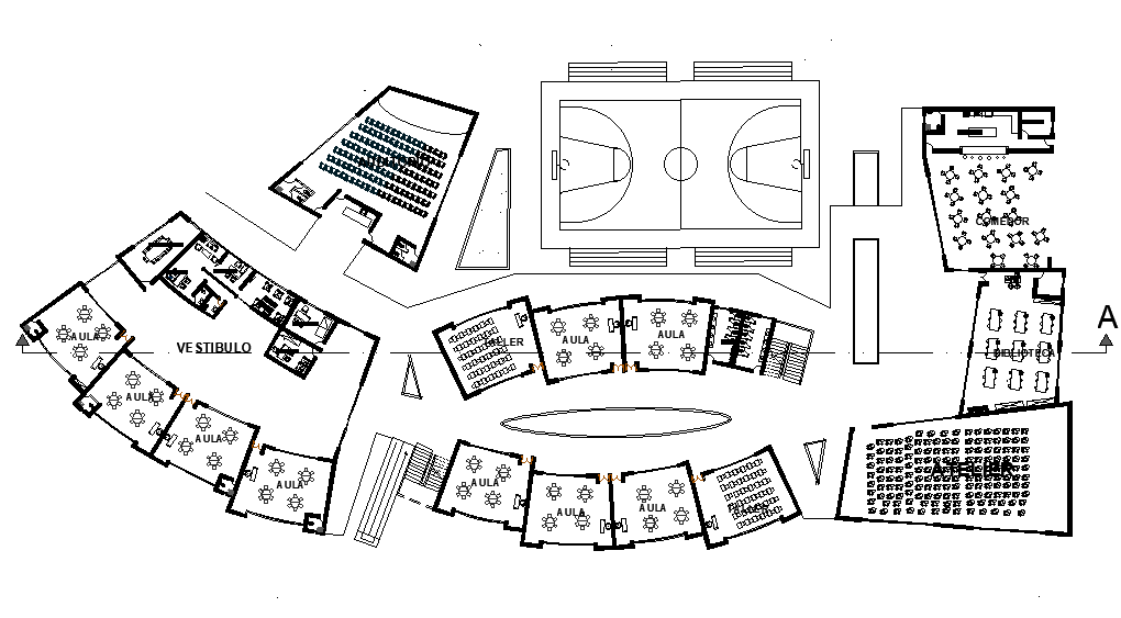 College plan is given in this Autocad drawing model.  In this plan basket ball court is given.  Download now.