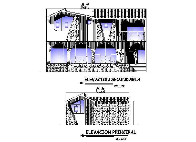 An elevation view of 13x14m house plan is given in this Autocad drawing model. This is G+1 villa building. In this villa plan, the living area, kitchen, dining area, patio service and master bedroom is available. In the first floor, the study room, master bedroom with attached toilet, kid’s room, guest room and other details are available. For more details download the Autocad drawing file. Thank you for downloading the Autocad files and other CAD program files from our website.