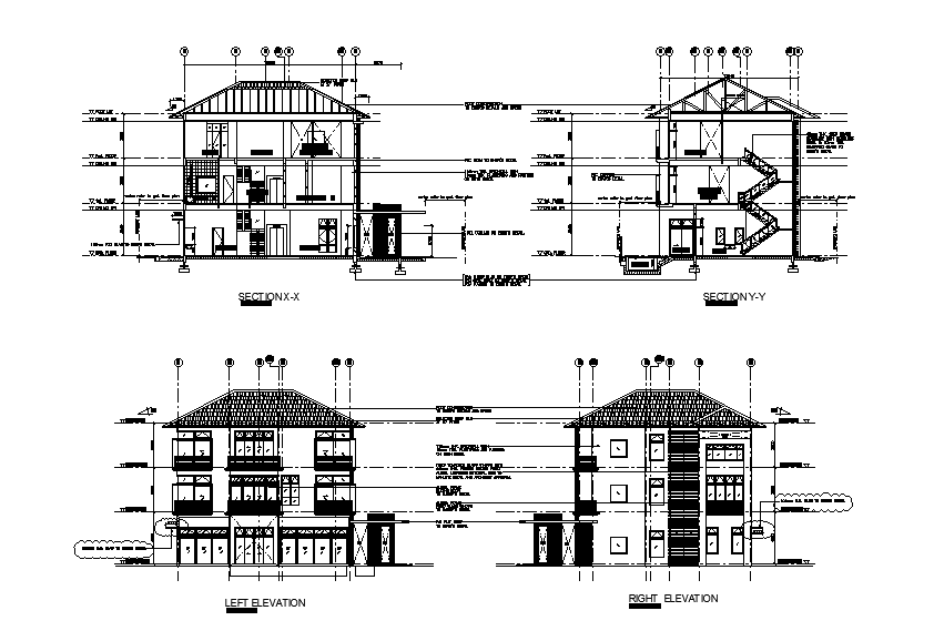 13m height of the bungalow house building section view is given in this Autocad drawing model. Download now.