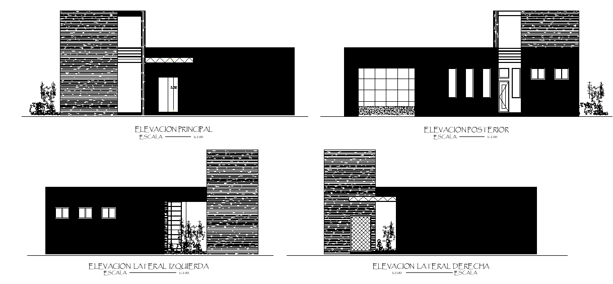Four side elevation of the house building is given in this Autocad model. Download now.