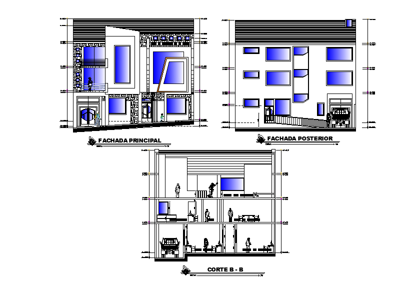 Front elevation and section view of 15x21m office cum multipurpose plan is given in this Autocad drawing model. This is G+2 office building. In this plan, the car parking, office cabins, secretary room, rest room for male & female, hall, waiting area, reception, information centre, multipurpose area and other details are given. For more details download the Autocad drawing file. Thank you for downloading the Autocad files and other CAD program files from our website.