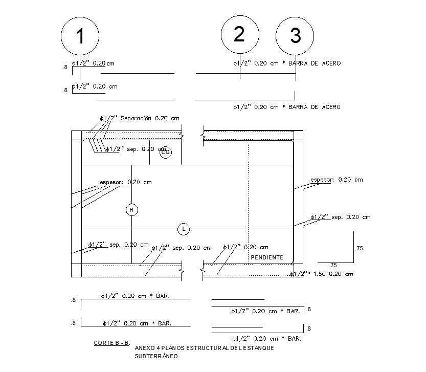 A structural drawing of the underground pond is given in this AutoCAD drawing file. Section view of the structural element is given. ½” steel bars are provided for this construction work. For more details download the Autocad file. Thank you for downloading the Autocad files and other CAD program files from our website.