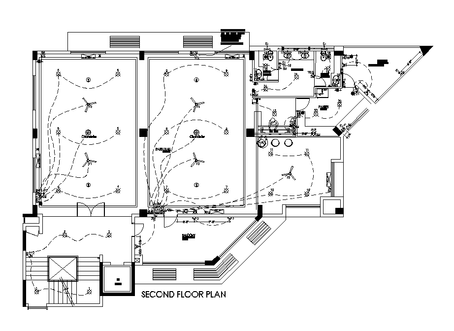 Electrical layout of the second floor plan of the club house is given in this Autocad file. Download now.