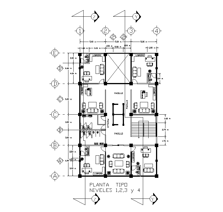 15x24m first floor office plan is given in this Autocad drawing file. Download now.