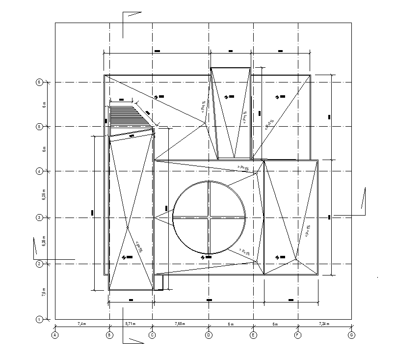 Roof plan layout of 39x39m office plan is given in this Autocad drawing file. Download now.
