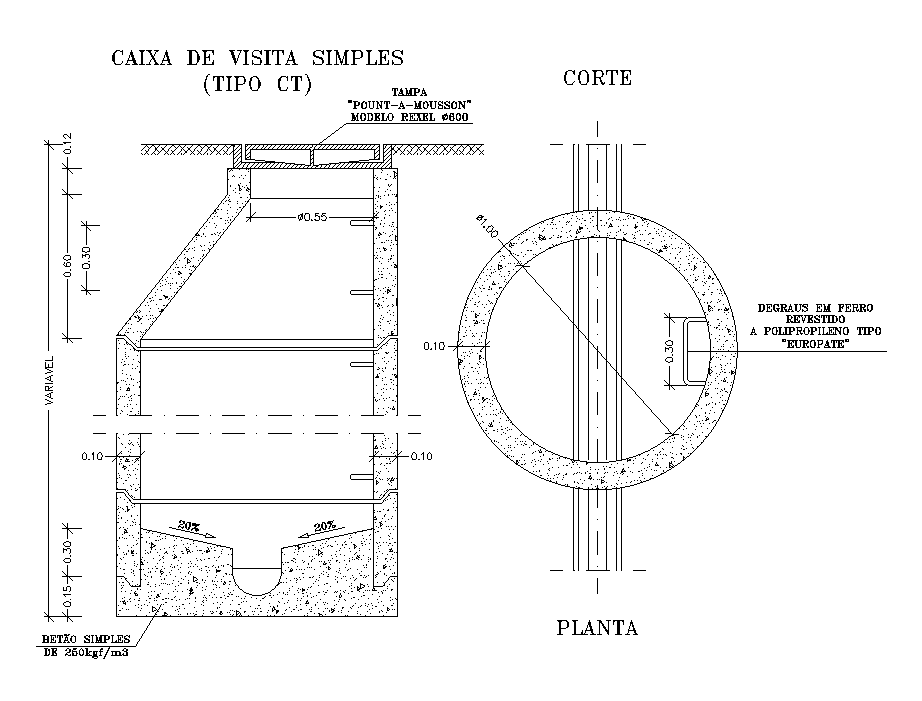 Plan of visit box is given in this Autocad drawing file. 250kgf/m3 concrete is provided at the base. Section view of the visit box is given. For more details download the autocad file. Thank you for downloading the Autocad files and other CAD program files from our website.