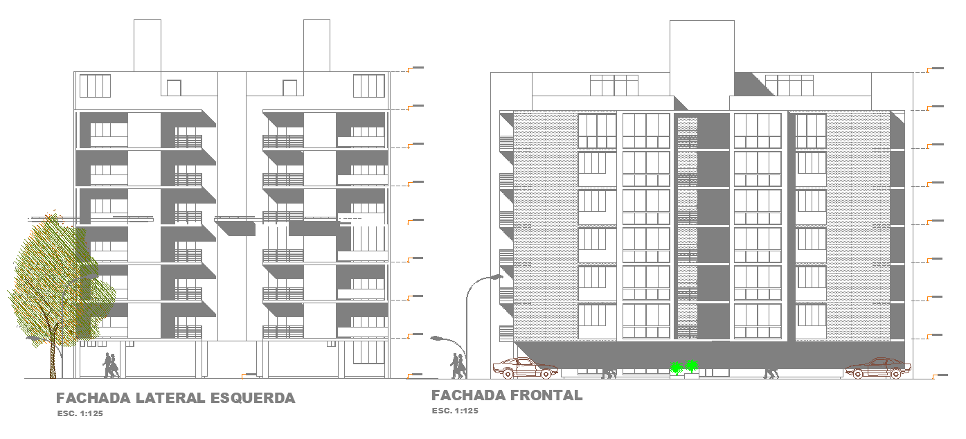 Hotel building elevation is given in the form of Autocad DWG drawing file. This is G+6 hotel building. The ground floor is provided for car parking. For more detail download the Autocad file. Thank you for downloading the Autocad file and other CAD program files from our website.