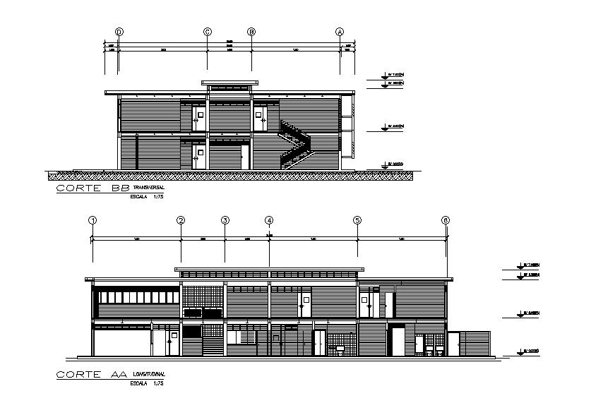 corte of the office building is given in the form of Autocad drawing file. Download now.