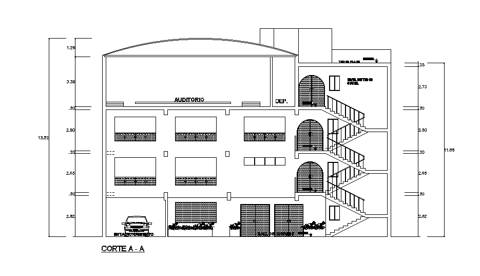 Section view of 20x20m College building has given in this Autocad DWG drawing file. Download now.