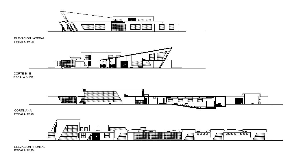An elevation of Club house building has given in the form of Autocad 2D drawing file. Download now.