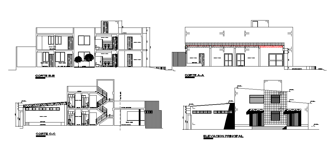 Elevation of 20x25m office building is given in this Autocad 2D DWG drawing file. Download now.