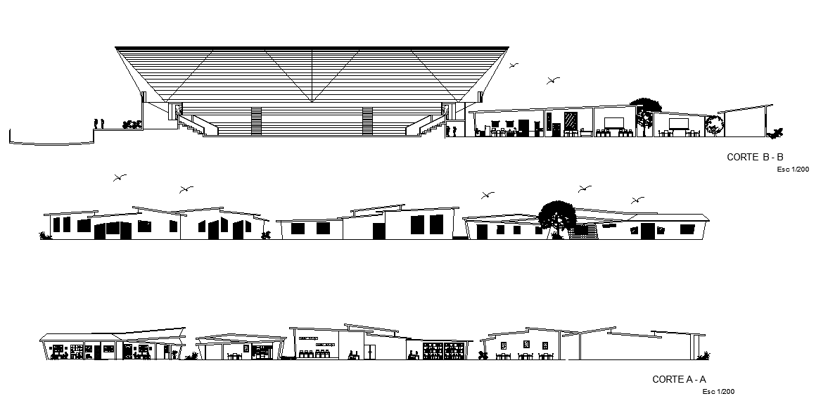 The AutoCAD drawing of stadium building sectional elevation design that shows cross furniture detail such as work desk, living area, study room, admin office, and stadium view detail dwg file. Thank you for downloading the AutoCAD drawing file and other CAD program files from our website.