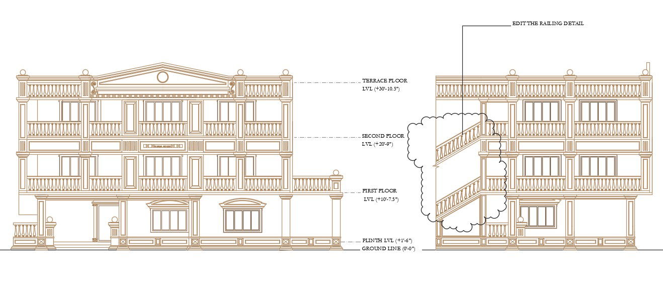 Complete Roman Architecture Style Front Elevation AutoCAD DWG File