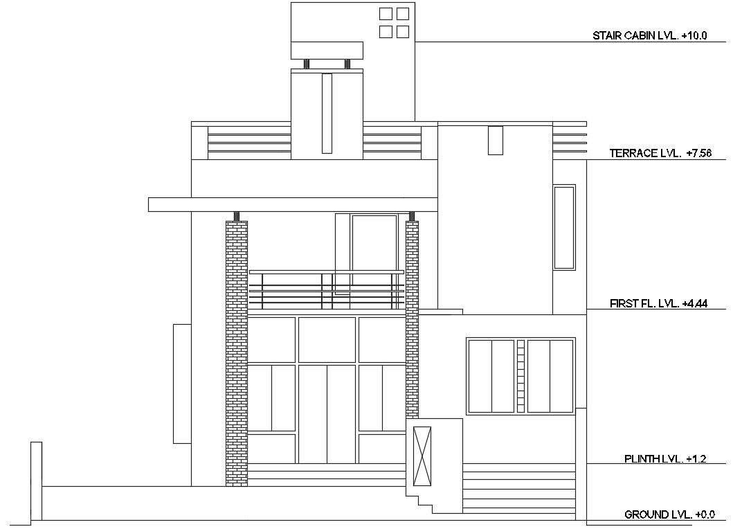 2d front elevation of the beautiful house is given in this cad drawing file. The front window design, door design, balcony grill design look nice. This drawing is very useful for civil engineers and architects. Download this cad drawing file on cadbull.com.