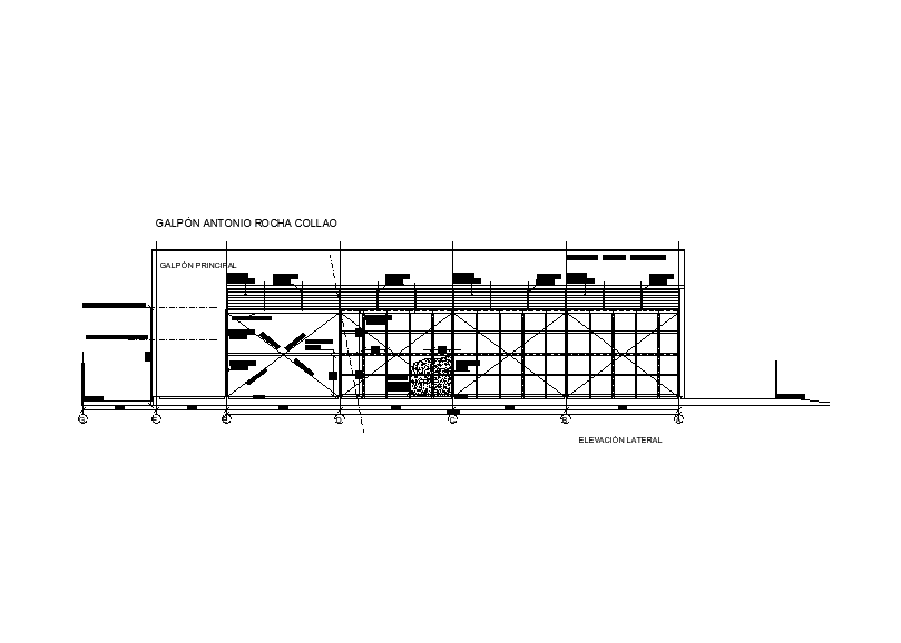 Sectional elevation of the industrial plant drawing presented in this AutoCAD file. Download this 2d AutoCAD drawing file.