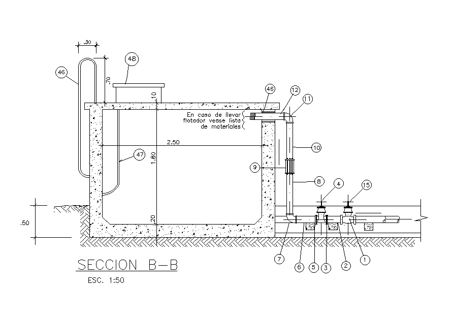 Hydropneumatic tank detail is presented in this AutoCAD drawing file. Material details are given in this model. Copper connector, globe valve, concrete base, and other details are given in this model. For more details download the Autocad drawing file. Thank you for downloading the Autocad file and other CAD program files from our website.