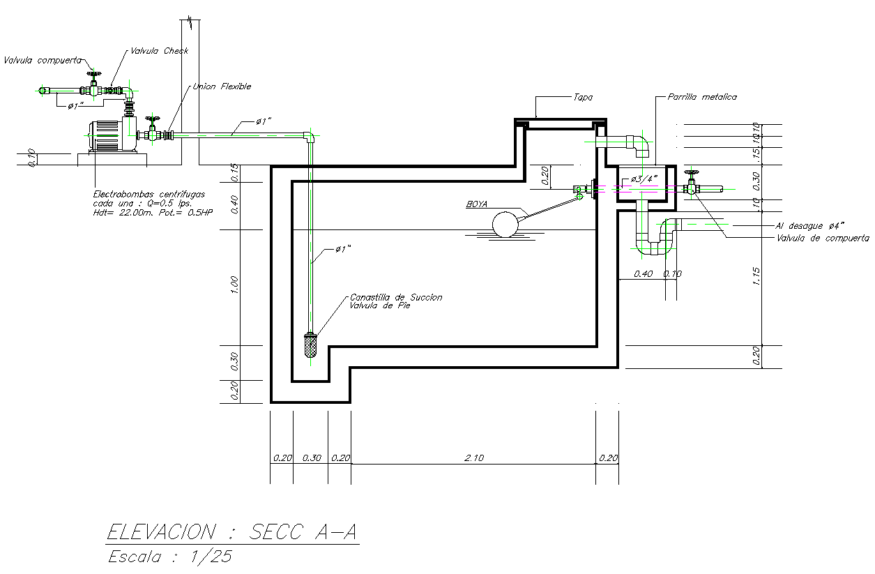 Tank detail autocad dwg files. Include side elevations, sections and detail of Tank