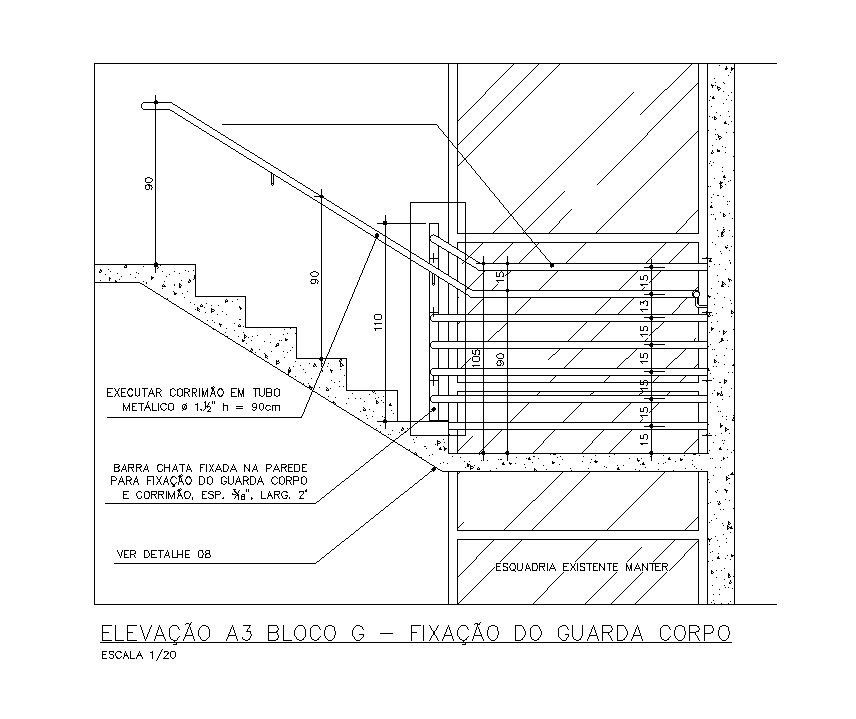 Staircase section detail drawing presented in this AutoCAD file. Download this 2d autocad drawing file.