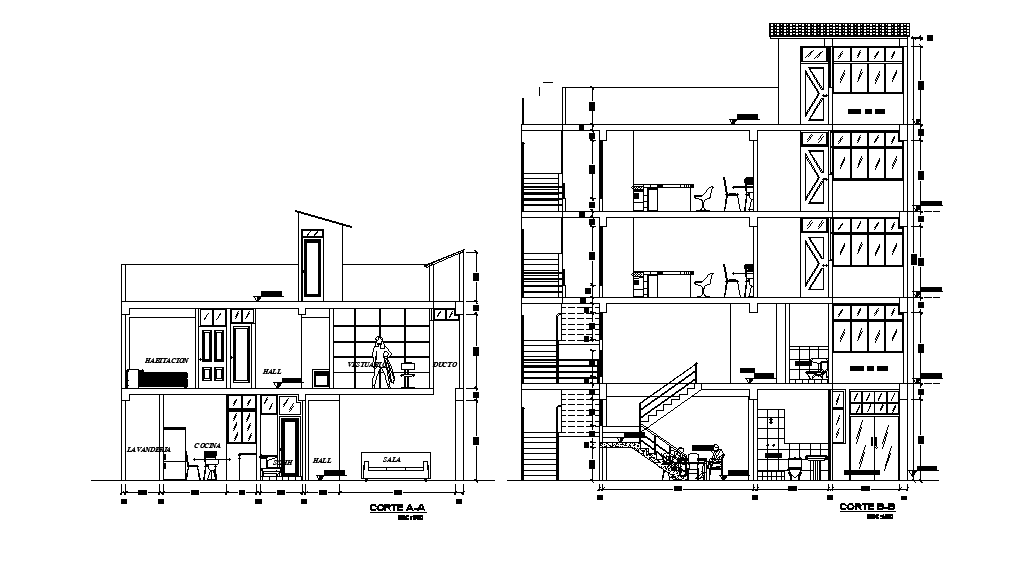 The AutoCAD drawing file presented 4 story building in this file. Download this 2d drawing file.