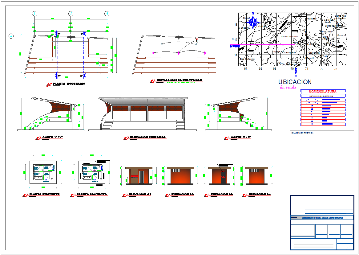 Stage architecture and civil detail cad drawing. Include presentation cad drawing, detail of architecture and detail of civil.