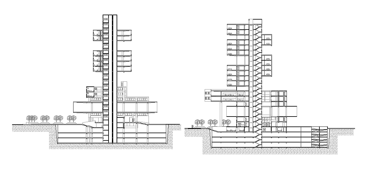 Commercial office And Hotel Building Section CAD Drawing Download DWG File