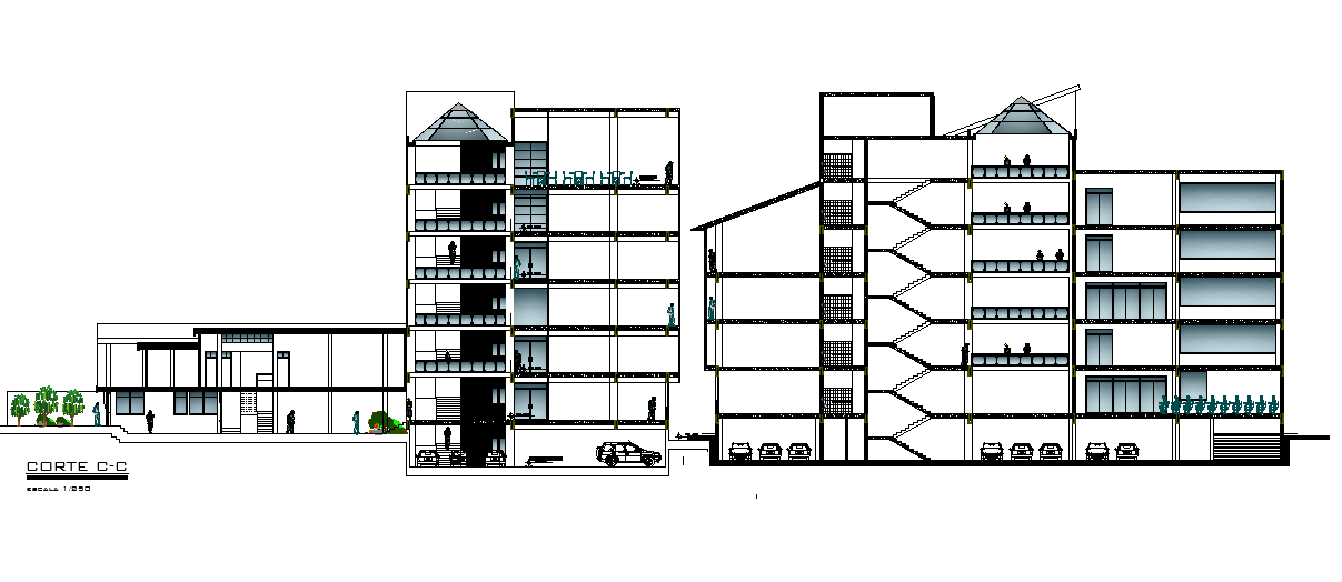Apartment section drawing specified in this AutoCAD file. this file consists of exterior view, interior view, door window detail, glass window elevation detail, with dimensions and specifications. this can be used by architects and engineers. Download this 2d AutoCAD drawing file.