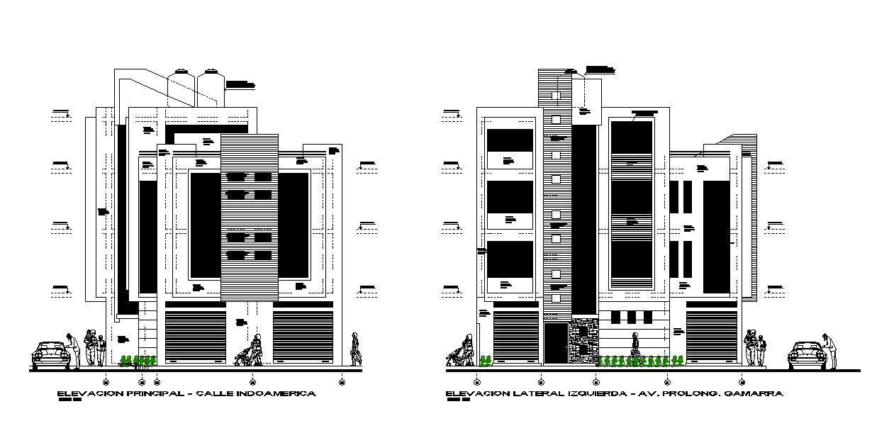 An elevation view of 13x13m house building is given in this Autocad drawing file. This is G+2 house building. In this plan two houses are available. These houses are consists of kitchen, dining area, master bedroom, guest room, common toilet and other details are mentioned. For more details download the Autocad drawing file. Thank you for downloading the Autocad drawing file and other CAD program files from our website.