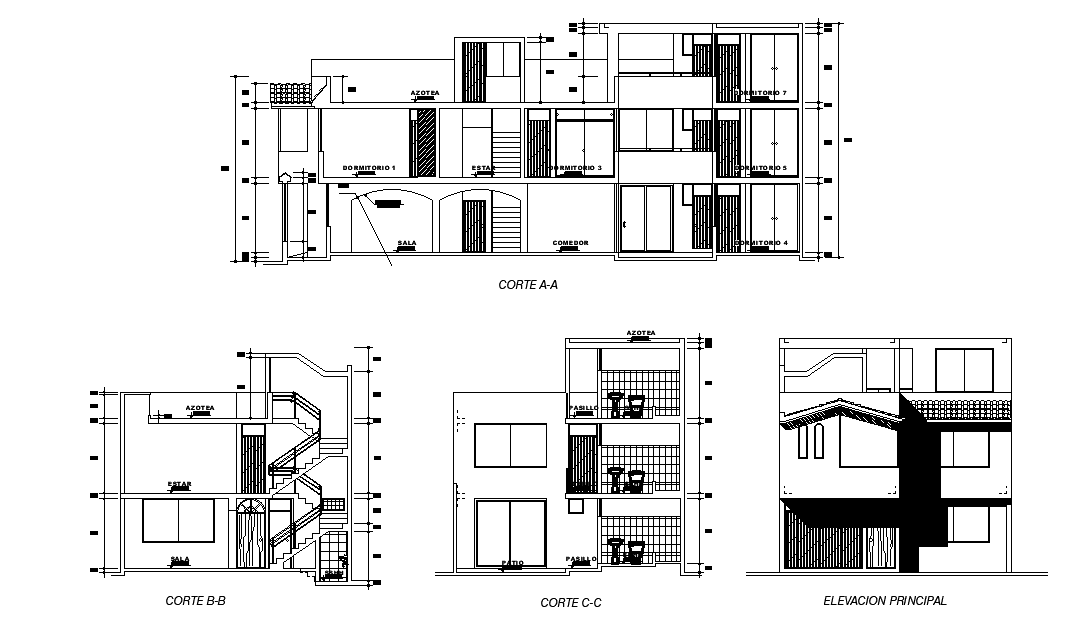 8m height of the two story house building is given in this Autocad drawing file. In this section view and elevation view is given. In this building, the living area, kitchen, guest room, common toilet, patio, dining hall, master bedroom available. For more details download the Autocad drawing file. Thank you for downloading the Autocad drawing file and other CAD program files from our website.