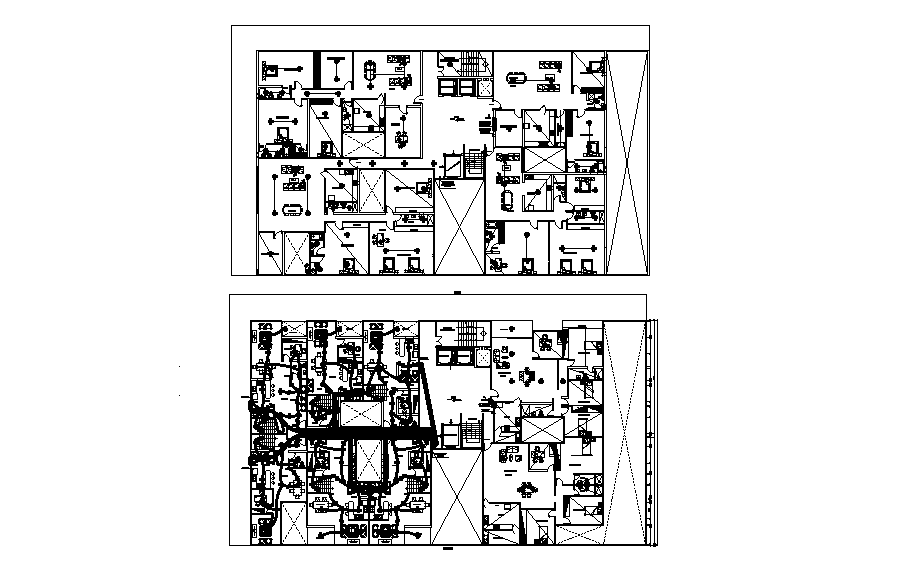 Electrical layout of 48x26m apartment house plan is given in this Autocad drawing file.  Download now.