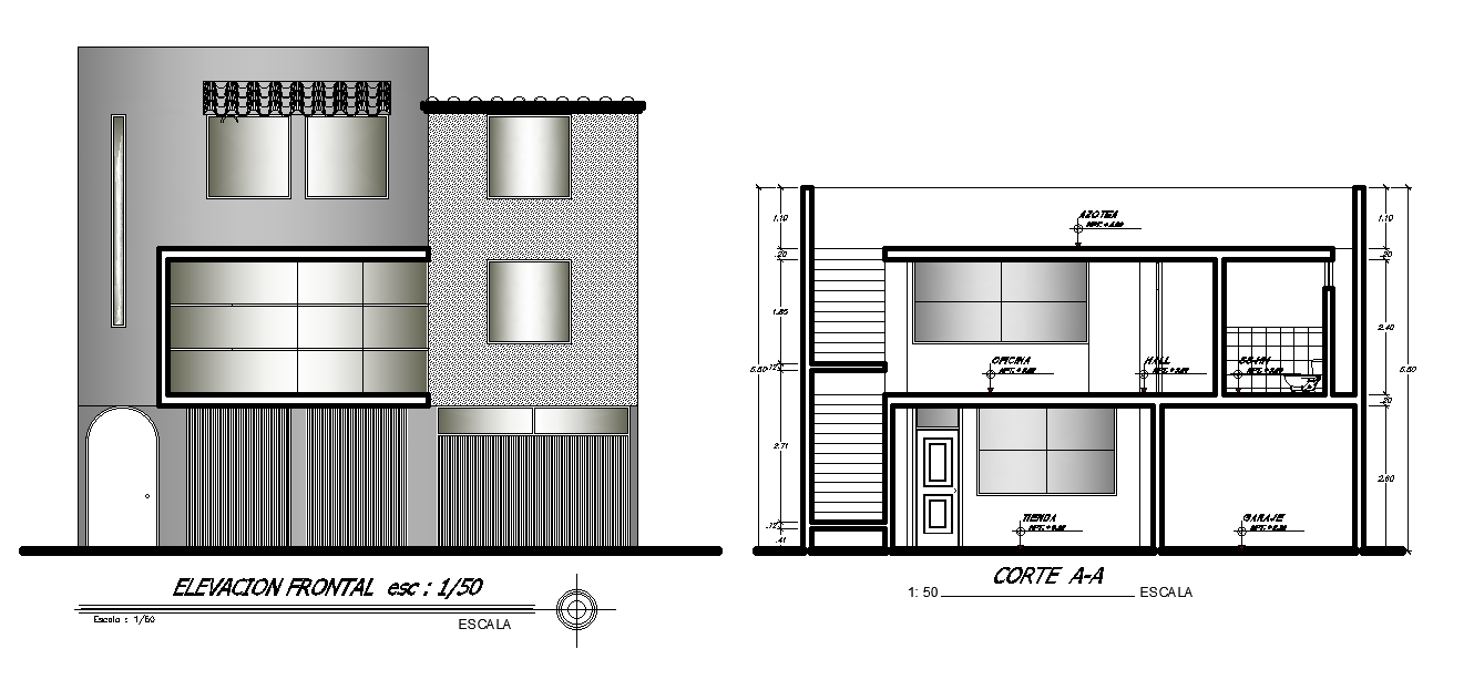 G+1 office building elevation view is given in this Autocad drawing file. Section view of the building is given in this model. In this plan office rooms, hall, car parking and water closet is available. For more details download the Autocad drawing file. Thank you for downloading the Autocad drawing file and other CAD program files from our website.