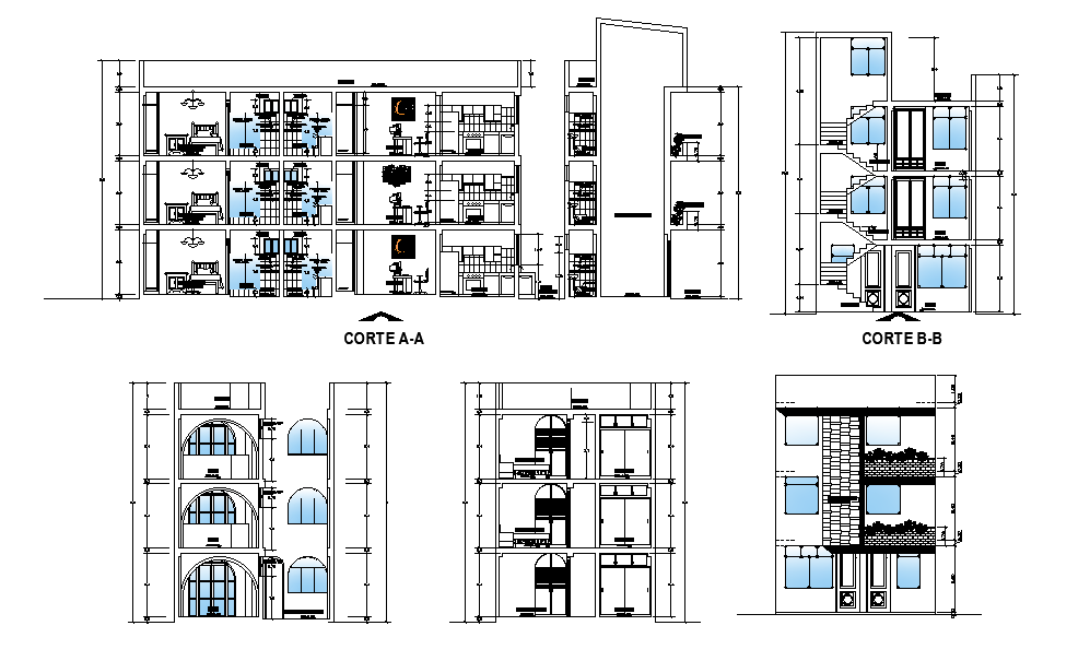 A section view of 6x20m house building is given in this Autocad drawing file. This is G+2 house building. In this plan three houses are available. These houses are consists of kitchen, dining area, living hall, study room, patio, master bedroom with attached toilet, guest room, kid’s room and common toilet. For more details download the Autocad drawing file. Thank you for downloading the Autocad drawing file and other CAD program files from our website.