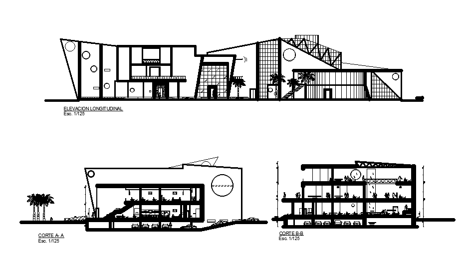 Section and elevation view of the club house is given in this Autocad drawing. Download now.