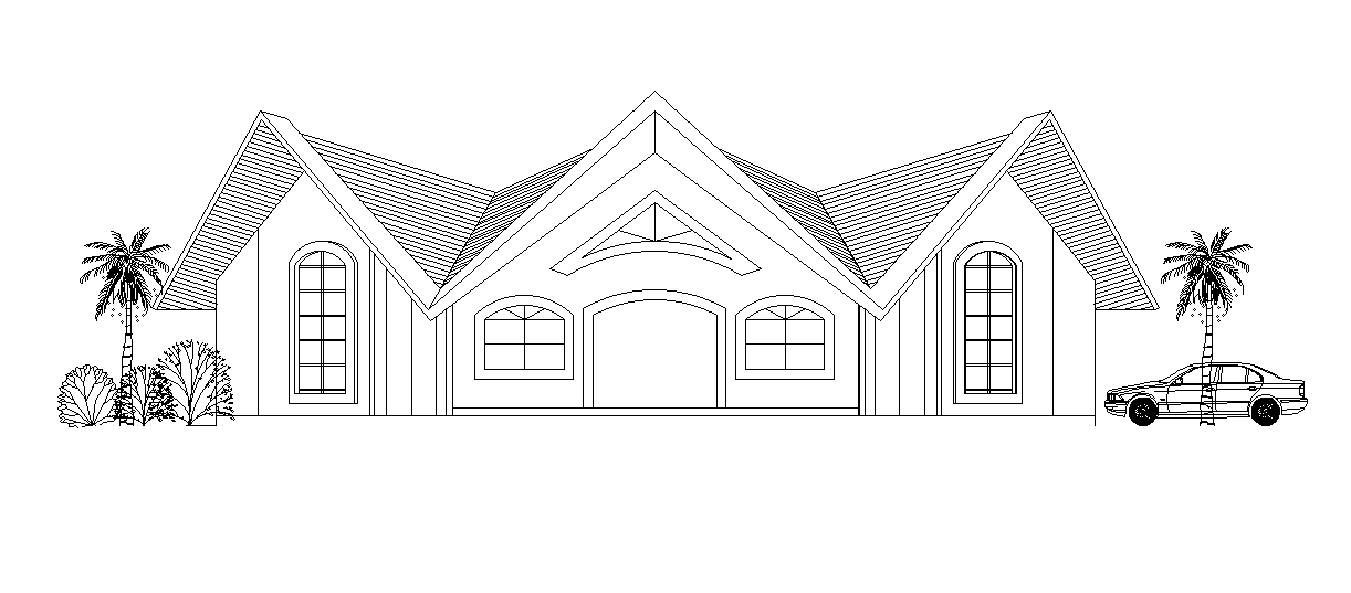 An elevation view of 30x30m club house plan is given in this Autocad drawing file.Download now.