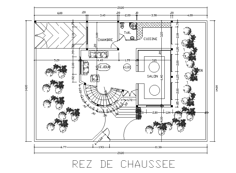 20x14m house plan is given in this Autocad drawing file.  Download now.