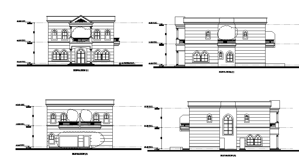 An elevation  view of 45x30m villa building is given in this Autocad drawing file. Download now.
