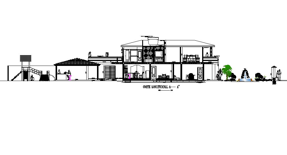 A section view of 19x11m house building is given in this Autocad drawing file. Download now.