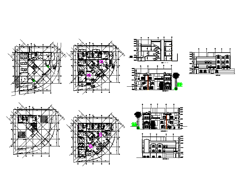 Bungalows Architecture design in lay-out detail, Elevation detail, Section detail, structure detail, floor plan lay-out.