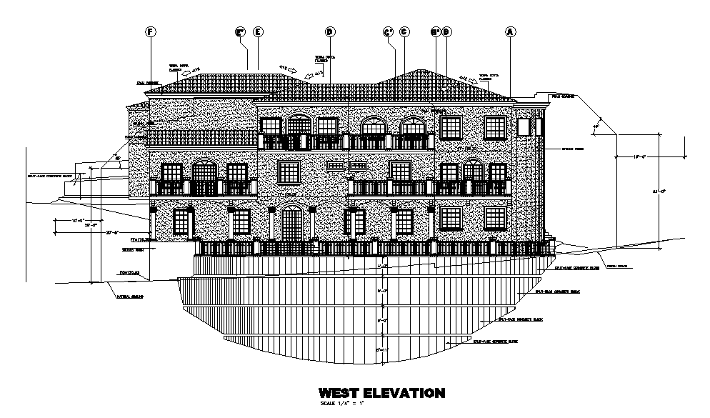 West side elevation of restaurant building has been given in this Autocad file. This is G+2 restaurant building. Other details are available. For more details download the Autocad drawing file. Thank you for downloading the Autocad files and other CAD program files from our website.