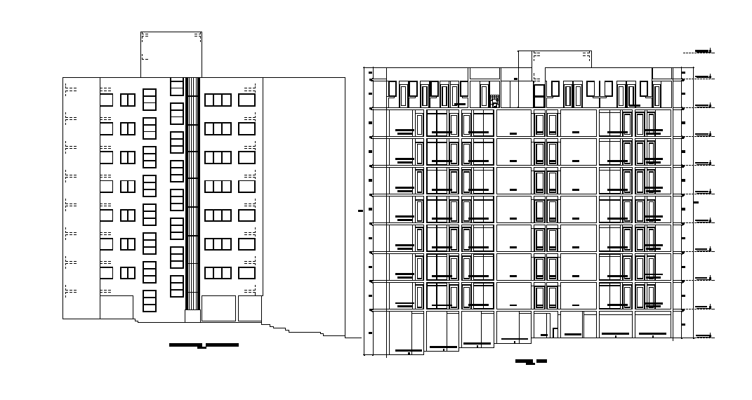 G+7 apartment building section view is given in this Autocad drawing model.Download now.