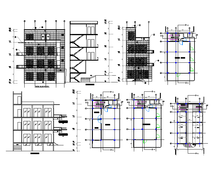 external finishes: 1'x2' aluminium cladding, glass, wooden door, epoxy paint, epoxy paint with texture, cladding (maroon), steel deck, wooden pergola, stainless steel, office setup detail, & site boundery detail, stair detail section.