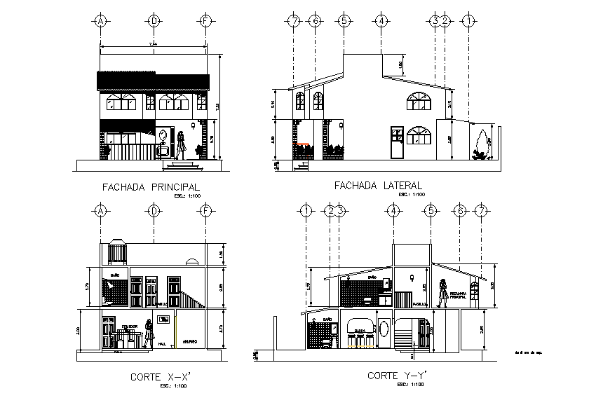An elevation and section view of 8x11m house plan is given in this Autocad DWG drawing file. Download now.
