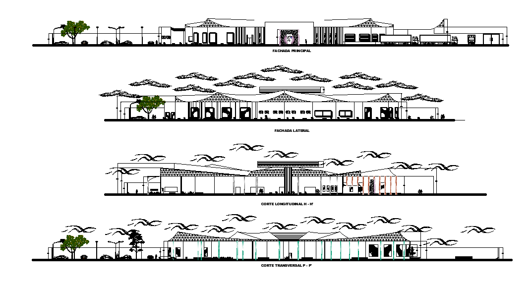 An elevation view of 146x100m industrial plan is given in this Autocad drawing file. Download now.